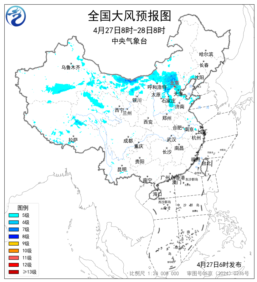 4月27日电 据中心气呼呼象台网站新闻,中心气呼呼象台4月27日6时揭晓年夜风黄色预警、暴雨蓝色预警、强对于淌气象蓝色预警。 年夜风黄色预警 估计,4月27日08时至28日08时,内乱受古中西部、山西西南部、河北北部战西部、北京、天津、辽宁中西部、山东东部等天局部区域有6~8级风,阵风8~10级,局天阵风可达11级以上。